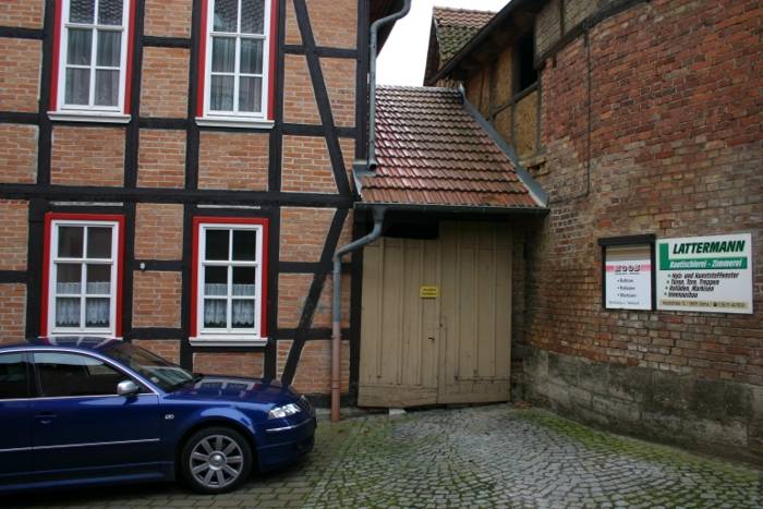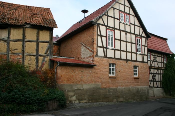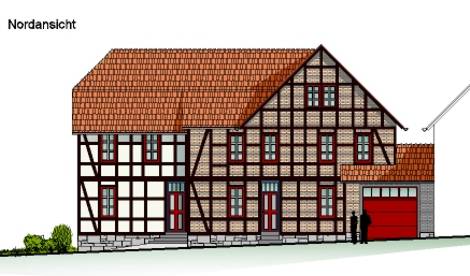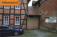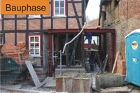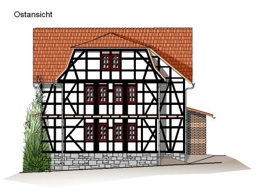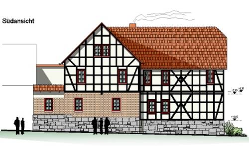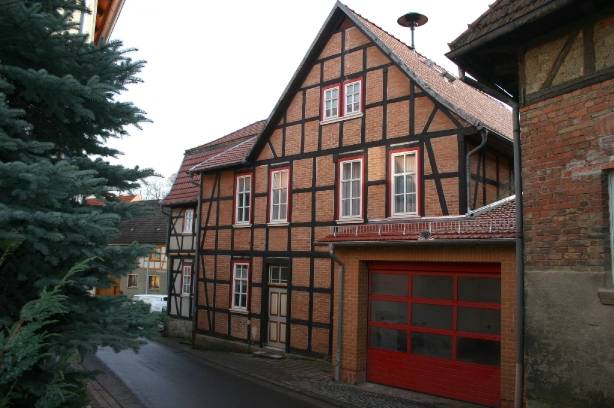 Das in zentraler Ortslage gelegene und bereits im Jahr 1994 grundhaft sanierte Fachwerkgebäude sollte eine zusätzliche Nutzung als Feuerwehrhaus erhalten, um die unbefriedigenden Bedingungen der Einsatzkräfte zu verbessern und die kommunal zu unterhaltenden Nutzungseinheiten zu zentralisieren. Zur Schaffung der erforderlicher Mindestgröße der Fahrzeughalle wurde ein vorhandener Hinterhof in die Gebäudefläche einbezogen und das Ober- und Dachgeschoss über 3 massive Profilstahlrahmen abgefangen.