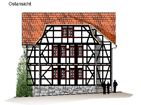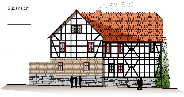 Der ehemals als Backhaus, Gaststätte und Bürogebäude dienende Baukörper wurde unter Wahrung der traditionellen Gebäudefassung grundhaft saniert und einer Nutzung als Gemeindehaus mit hohen bauphysikalischen Kennwerten, zweckmäßiger Raumteilung und modernen Installationen zugeführt. Das traditionelle Holzfachwerk wurde freigelegt und teilweise ergänzt. Durch die komplette Überplanung der Raumfassung mit teilweiser Umstrukturierung des staatischen Systems wurden großzügige und zeitgemäße Nutzungseinheiten im traditionell kleingliedrigen Fachwerkgebäude geschaffen.