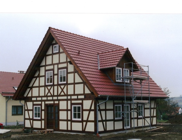 Wunsch der Bauherrschaft war die Errichtung eines Einfamilienhauses im traditionellen Holz-Fachwerkbau.