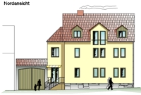 Das vorhandene Zweifamilienhaus sollte wegen ungünstigem Raumzuschnitt, hohem Sanierungsaufwand und schlechter bauphysikalischer Kennwerte durch einen Neubau ersetzt werden.
