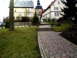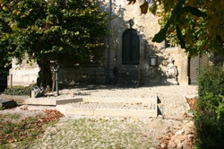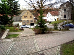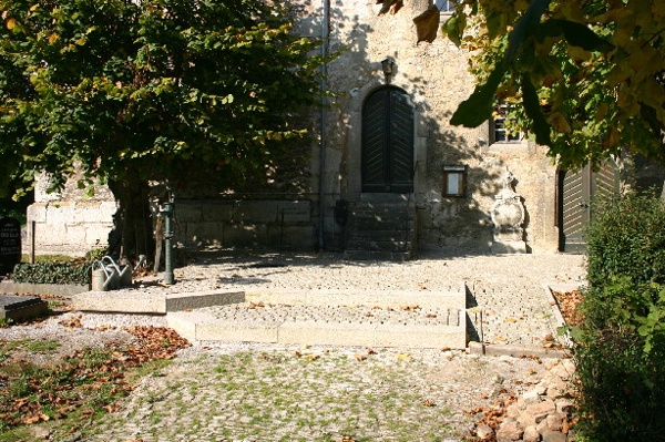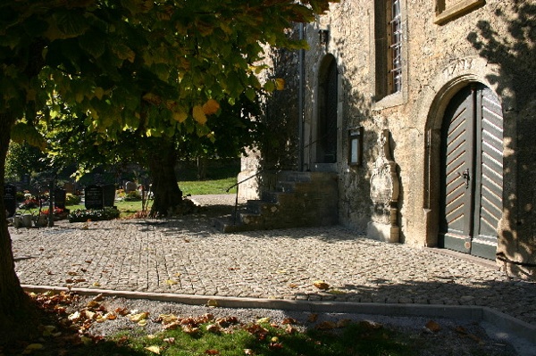 Der mit groß- und kleinformatigen Betonplatten belegte Zugang zum Hauptportal der Ortskirche war wegen der erhöhten Unfallgefahr infolge starken Längsgefälles und der gestalterisch unbefriedigenden Lösung neu anzulegen.