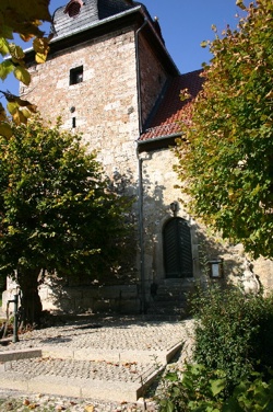 Treppenanlagen, Entwässerungsrinnen und die dem Kirchengebäude unmittelbar vorgelagerte Freifläche wurde aus einheimischem Kalkstein hergestellt bzw. belegt. Eine durchgängige behindertengerechte Ausbildung der Wegetrasse war grundsätzliches Planungsziel.