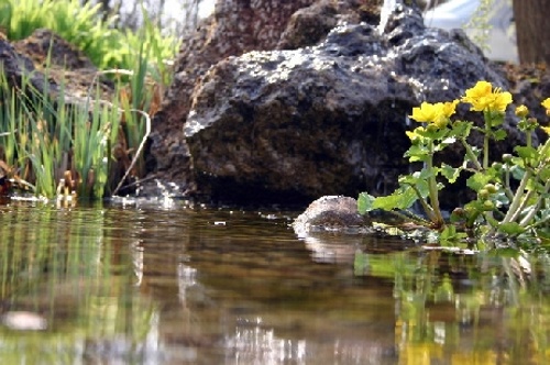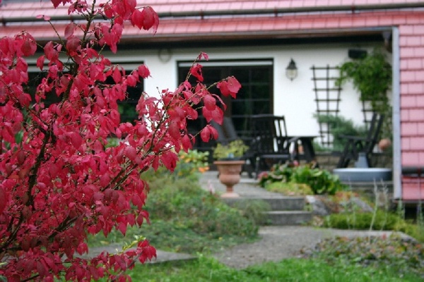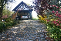 Zur Steigerung des Erholungswertes wurde ein Zierteich mit Sumpf- und Tiefwasserzone angelegt. Der neu errichtete Carport in traditioneller Holzfachwerkbauweise wurde so konstruiert und gestaltet, dass er gleichzeitig als überdachter Freisitz für sommerliche Familienfeiern genutzt werden kann.